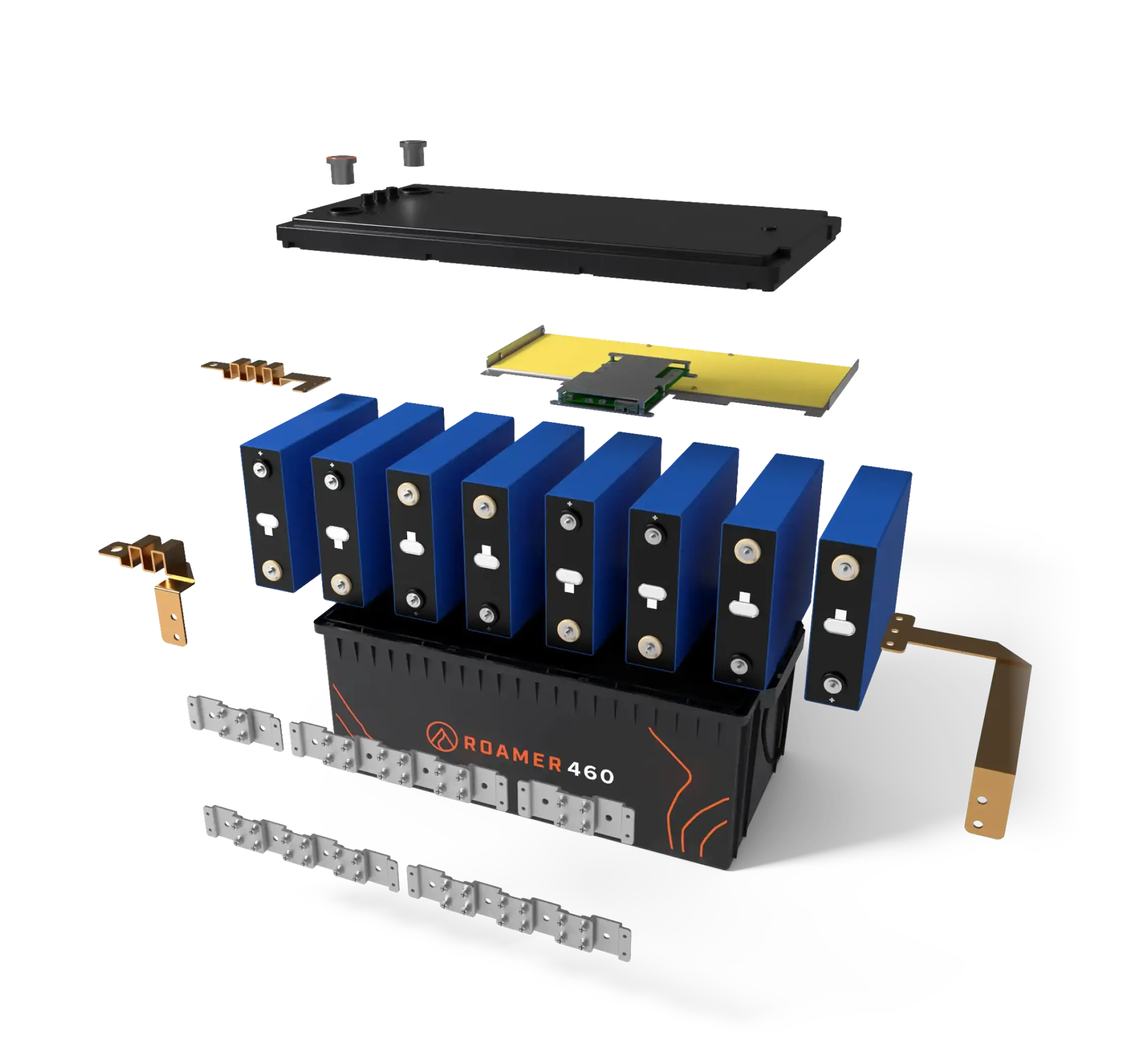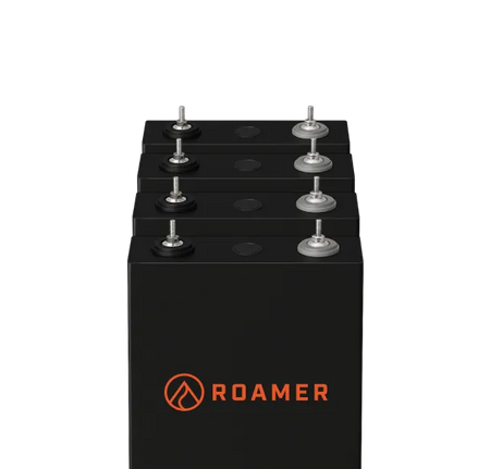 Matched and traceable grade A LiFePO4 cells with steel compression brackets and double-bolted busbars. Only the best cells go into a Roamer battery.