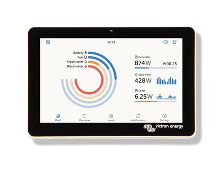 Seamless communication with Victron GX devices, allowing for monitoring and control, on screen and remotely via the VRM portal.